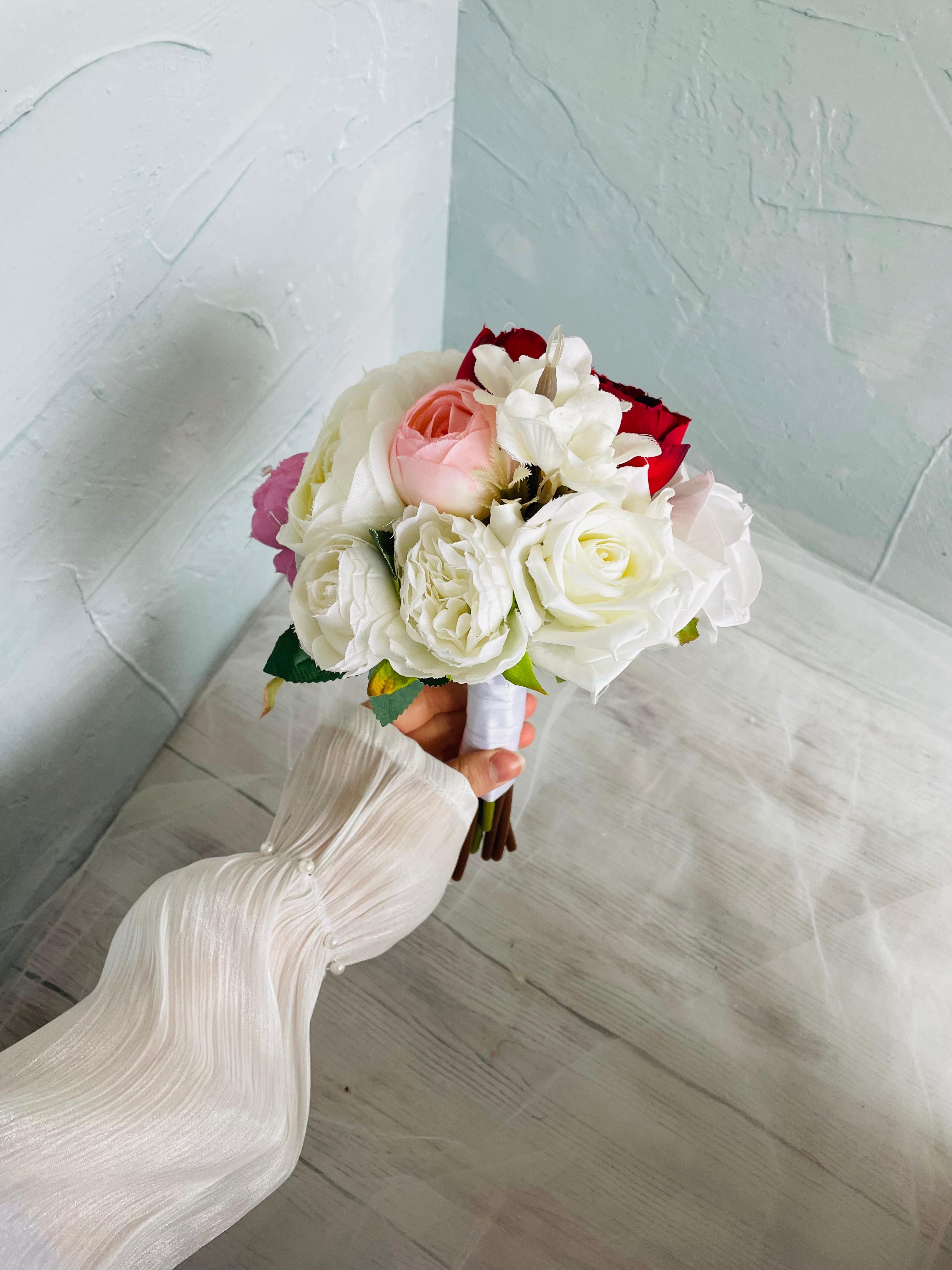 Düğün gününüzde kalbinizde özel bir yeri olan buketinizi atmaya kıyamayan gelinler için, zarafetle hazırlanmış mini atma çiçekleri sunuyoruz. Orijinal buketinizi sevgiyle saklarken, buket atma geleneğinin heyecanını da eksiksiz yaşamanız için ideal bir alternatif.??Teslim süresi 15-20 iş günüdür; acil tarihler için not kısmına belirtmeniz yeterlidir.