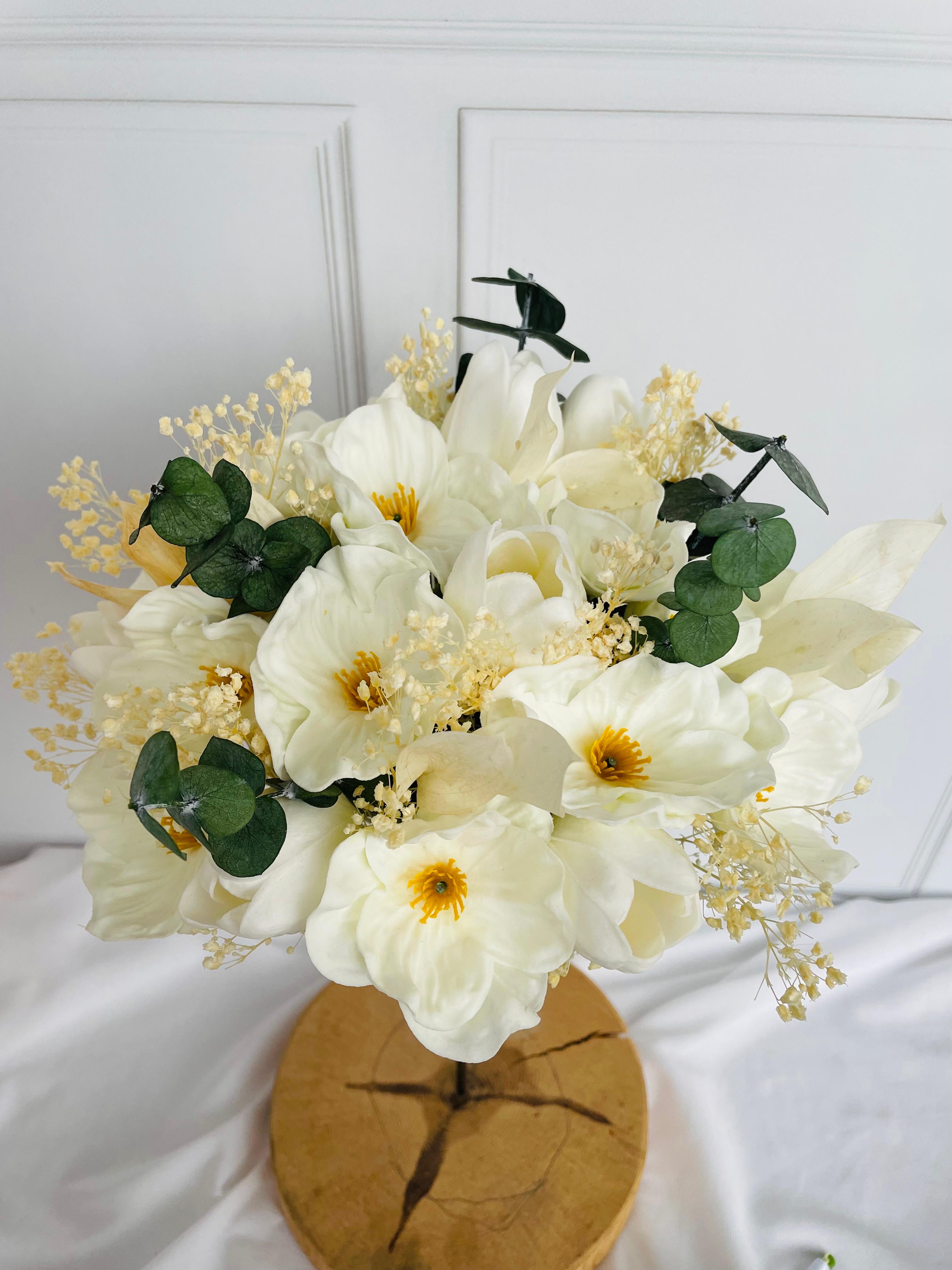Gelinciklerin sıcak enerjisi, beyaz çiçeklerin zarif duruşuyla buluşuyor. Modern ve romantik çizgileri ile her anınıza sofistike bir ışıltı katmak için tasarlandı.? Düğün veya nişan için uygundur. Orta boydur ne büyük ne de küçük. Yaka çiçeği hediyedir. Teslim süresi 15-20 iş günüdür; acil tarihler için not kısmına belirtmeniz yeterlidir. ?Ürünlerimiz tamamen el yapımıdır; bu nedenle her buket ve süs benzersizdir. Çiçeklerin yerleşimi ve detayları ufak farklılıklar gösterebilir, bu da ürünlerimize özel bir karakter katar. ?