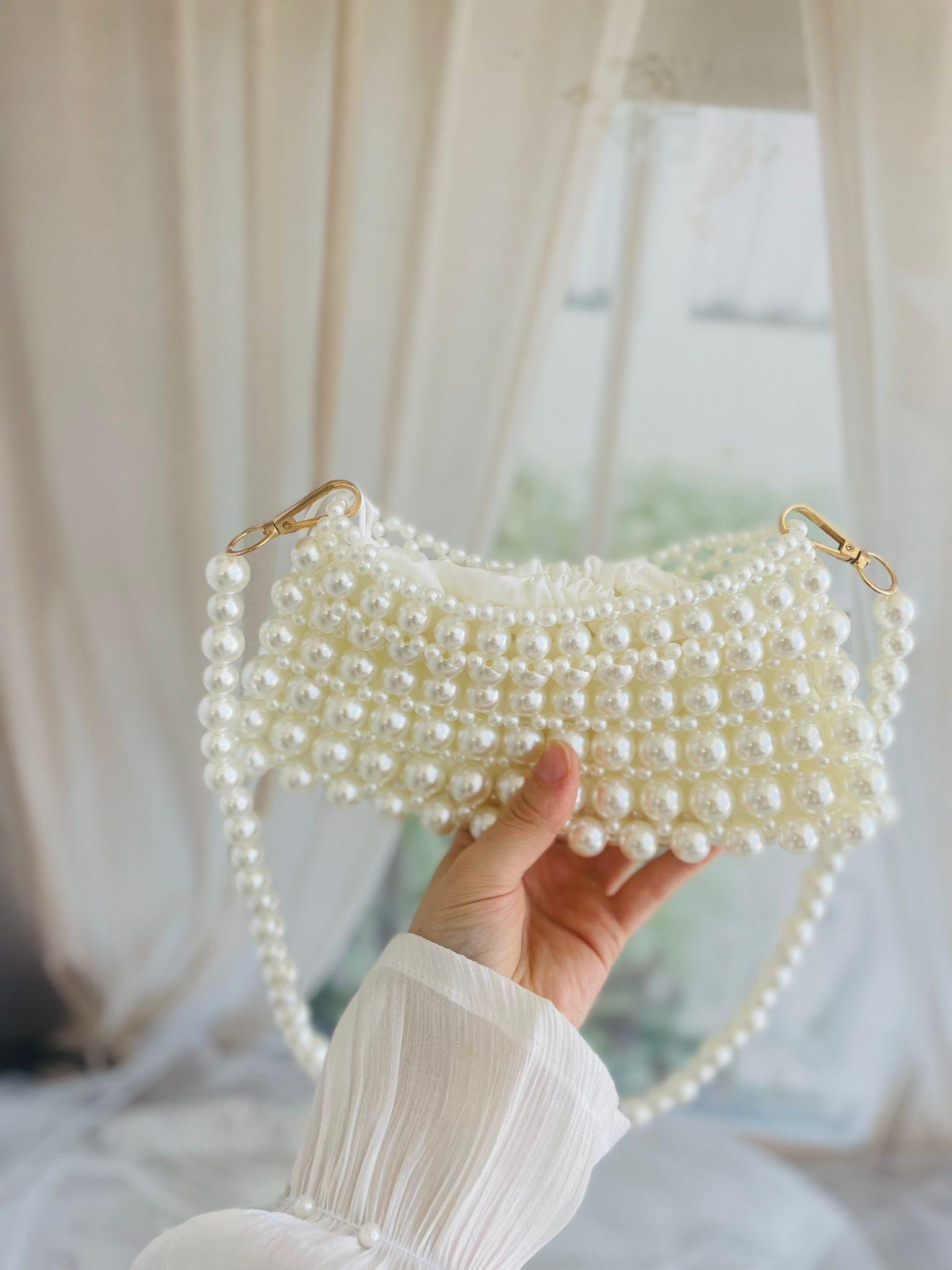 Tamamı inci detaylarla süslenmiş bu özel tasarım çanta, iç kısmındaki büzgülü kese yapısı sayesinde eşyalarınızı güvenle muhafaza eder. Zarif kesesi kolayca açılıp kapanabilirken, çantaya hem estetik hem de pratik bir kullanım sunar. Şık inci sap detayı ve romantik tasarımıyla; nişan, düğün, davet ve özel gün kombinlerini tamamlamak için ideal bir parçadır. ?Teslim süresi 15-20 iş günüdür; acil tarihler için not kısmına belirtmeniz yeterlidir.