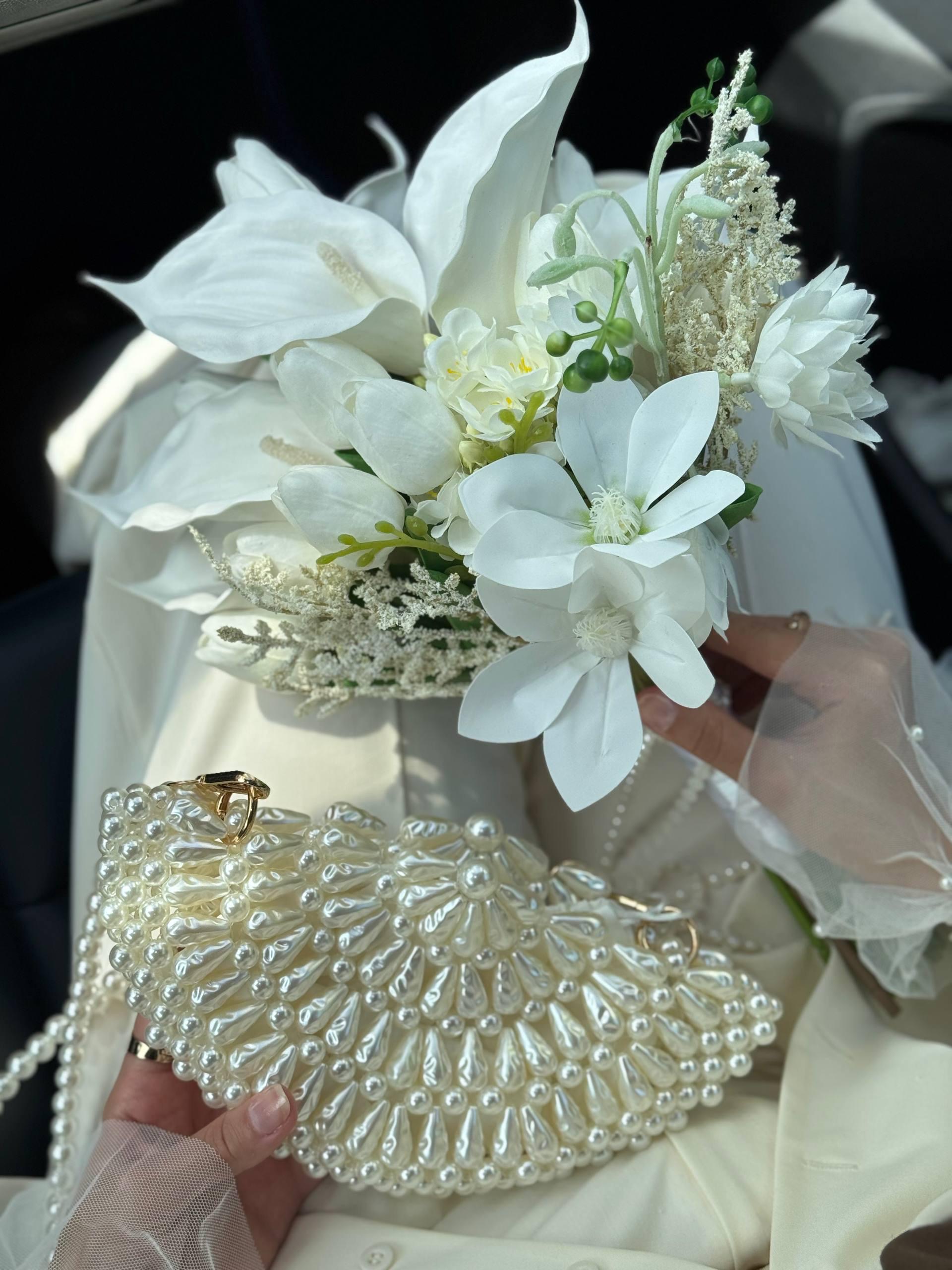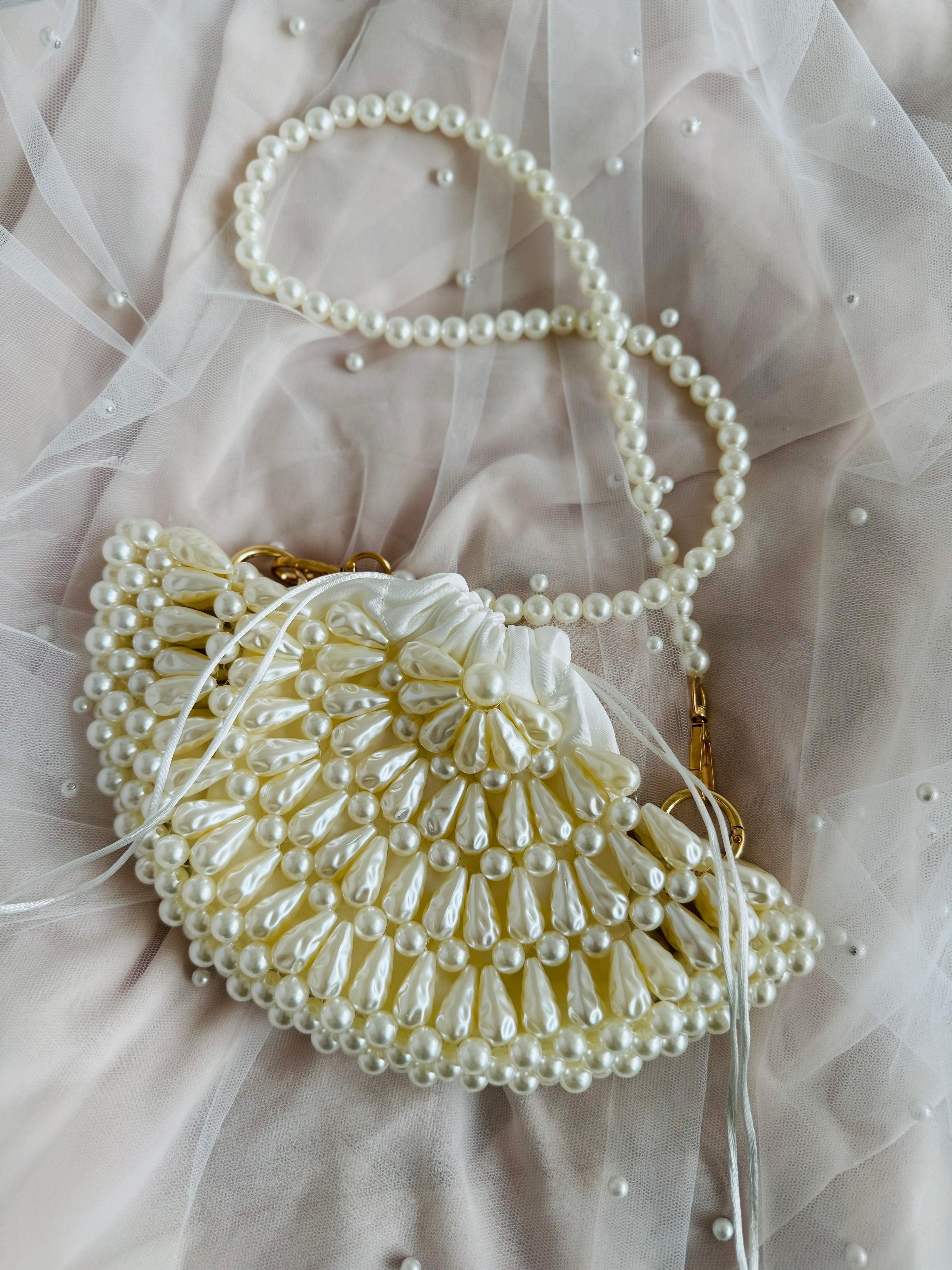 Tamamı inci detaylarla süslenmiş bu özel tasarım çanta, iç kısmındaki büzgülü kese yapısı sayesinde eşyalarınızı güvenle muhafaza eder. Zarif kesesi kolayca açılıp kapanabilirken, çantaya hem estetik hem de pratik bir kullanım sunar. Şık inci sap detayı ve romantik tasarımıyla; nişan, düğün, davet ve özel gün kombinlerini tamamlamak için ideal bir parçadır. ?Teslim süresi 15-20 iş günüdür; acil tarihler için not kısmına belirtmeniz yeterlidir.
