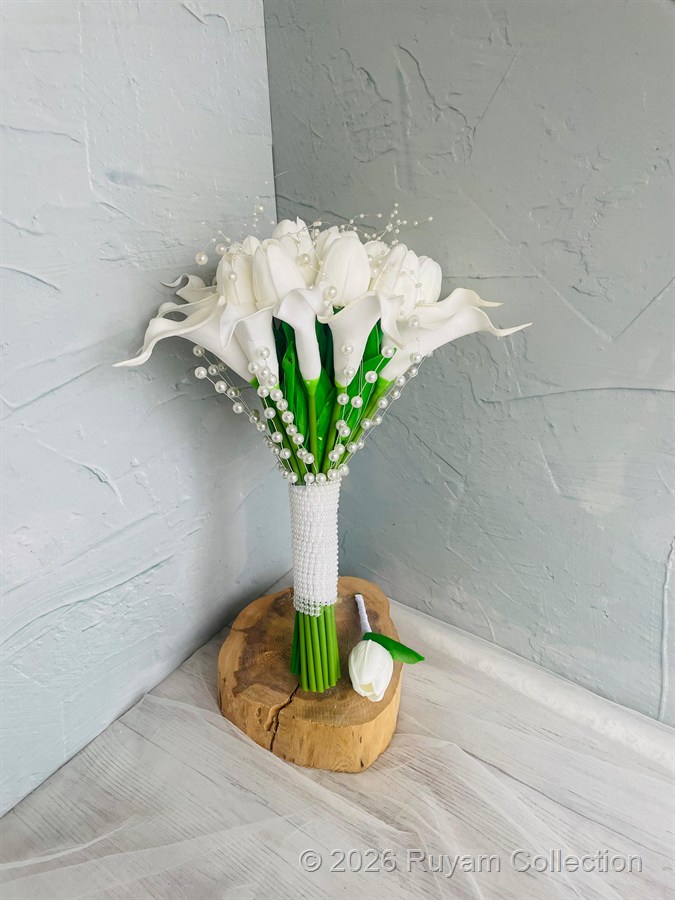 Gerçek çiçek görünümündeki birinci sınıf ıslak dokulu çiçeklerle hazırlanmıştır. Zarif ve sade tasarımıyla her gelinliğe uyum sağlar. Orta boydur ne büyük ne de küçük . Yaka çiçeği hediyedir. Teslim süresi 15-20 iş günüdür; acil tarihler için not kısmına belirtmeniz yeterlidir. ? Ürünlerimiz tamamen el yapımıdır; bu nedenle her buket ve süs benzersizdir. Çiçeklerin yerleşimi ve detayları ufak farklılıklar gösterebilir, bu da ürünlerimize özel bir karakter katar. ?