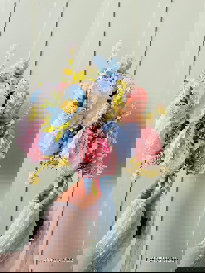 Şakayık ve gülün zarafetiyle hazırlanmış bu buket, her özel ana zarif bir dokunuş katar. Birinci sınıf kalitedeki birebir canlı görünümündeki çiçeklerden oluşmaktadır. Orta boydur ne büyük ne de küçük. Yaka çiçeği hediyedir.? 💌 Teslim süresi 15-20 iş günüdür; acil tarihler için not kısmına belirtmeniz yeterlidir. ?Ürünlerimiz tamamen el yapımıdır; bu nedenle her buket ve süs benzersizdir. Çiçeklerin yerleşimi ve detayları ufak farklılıklar gösterebilir, bu da ürünlerimize özel bir karakter katar.
