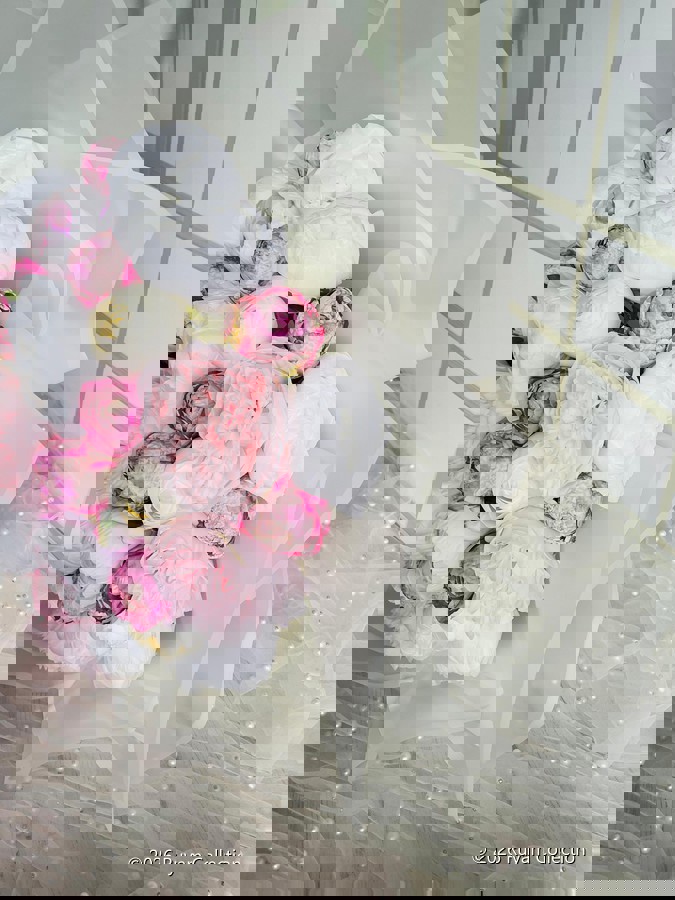 Göz alıcı bir ilk izlenim için tasarlandı. Her detayıyla özenle hazırlanan isteme ve nişan buketimiz, sevginin en asil halini yansıtır.? Büyük boydur. Ömürlük birinci sınıf kalitedeki kumaş çiçeklerden oluşmaktadır. Teslim süresi 15-20 iş günüdür; acil tarihler için not kısmına belirtmeniz yeterlidir.? ?Ürünlerimiz tamamen el yapımıdır; bu nedenle her buket ve süs benzersizdir. Çiçeklerin yerleşimi ve detayları ufak farklılıklar gösterebilir, bu da ürünlerimize özel bir karakter katar.