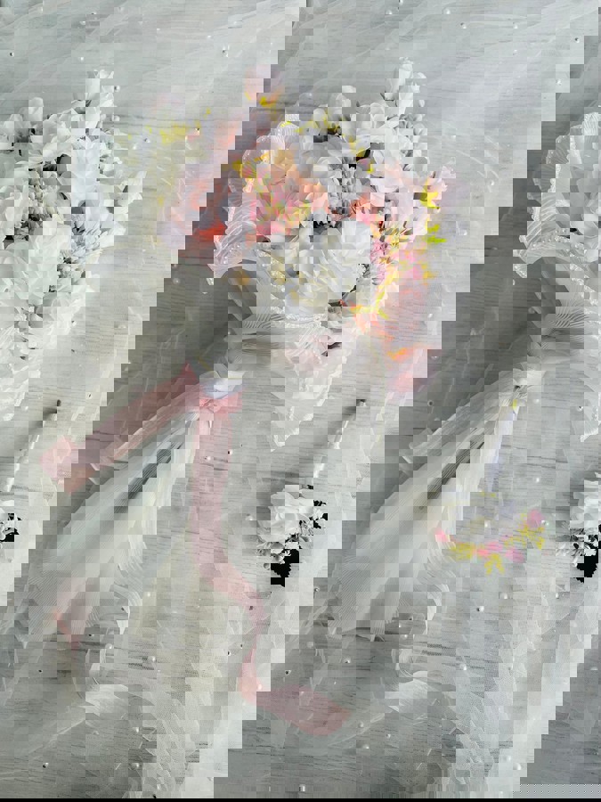 Gelin buketi, gelin araç süsü veya masa çiçeği olarak düğününüzün genel konseptine uyum sağlar. Renk paletine göre kişiselleştirme yapabilirsiniz.